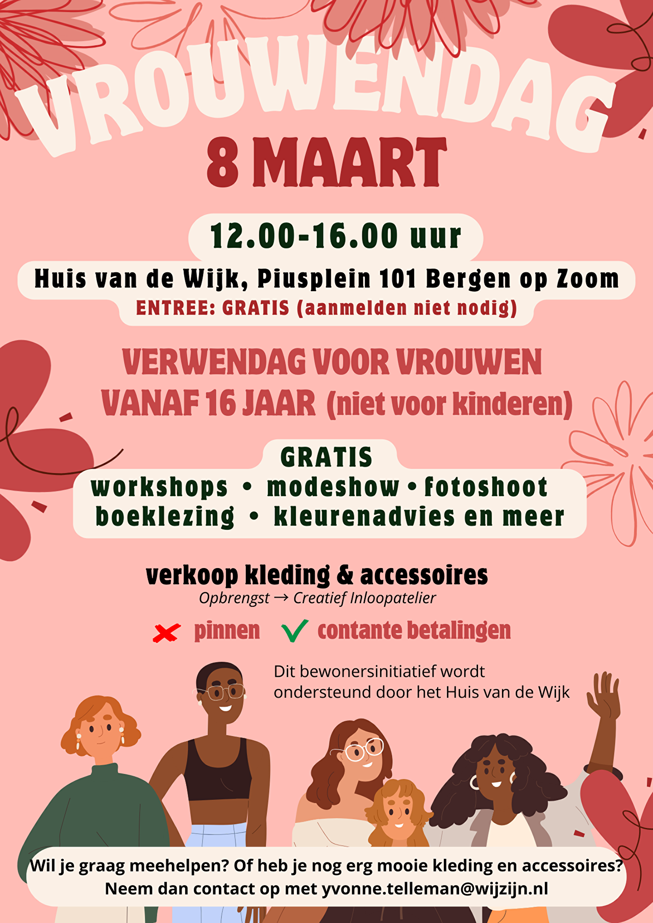 Op zondag 8 maart organiseren we een Vrouwendag voor vrouwen vanaf 16 jaar. Een middag vol ontmoeting, inspiratie en creativiteit.