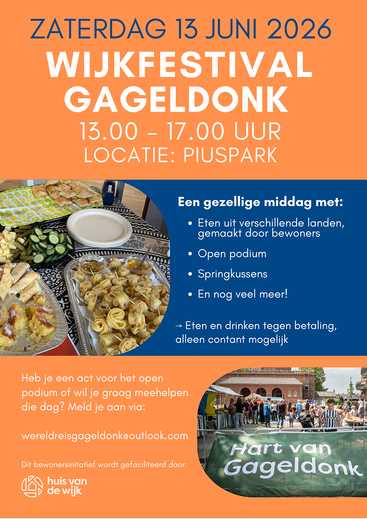 Op zaterdag 13 juni 2026 is het Wijkfestival Gageldonk!